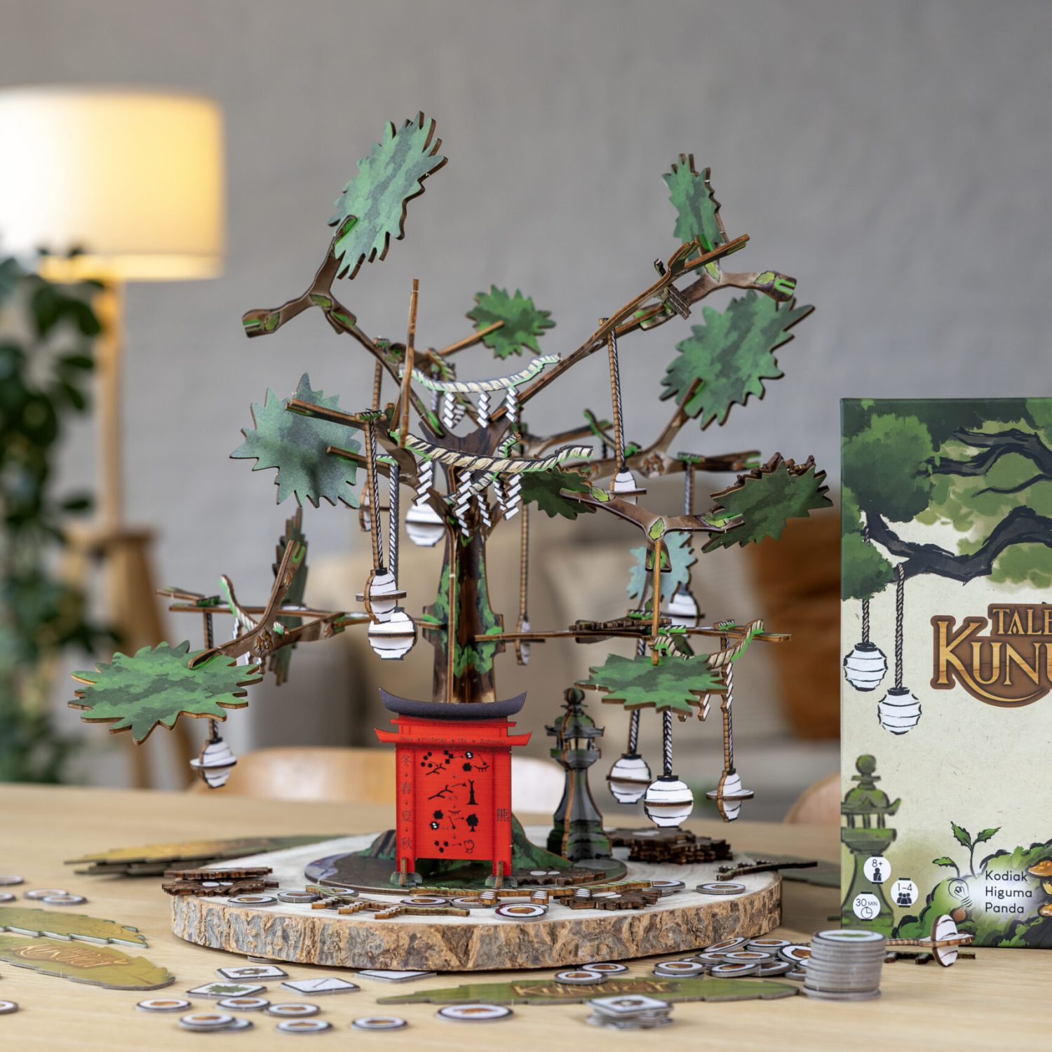 Tales of Kunugi est un jeu collaboratif où la dextérité, l’observation et la stratégie d’équipe sont nécessaires pour faire grandir votre Kunugi et faire gagner des points à votre équipe. Les joueurs, réunis en équipe de Kodama, feront grandir et décoreront le Kunugi, du tronc aux branches. L’ajout de rameaux à l’arbre permettra d’obtenir davantage d’options de décorations et d’accomplir des objectifs individuels et d’équipe. À la fin de la 5e année, chaque objectif accomplie apportera des points de victoire pour l’équipe, ce qui déterminera la splendeur du Kunugi. Plus les points de victoire seront élevés, et plus majestueux sera votre Kunugi.